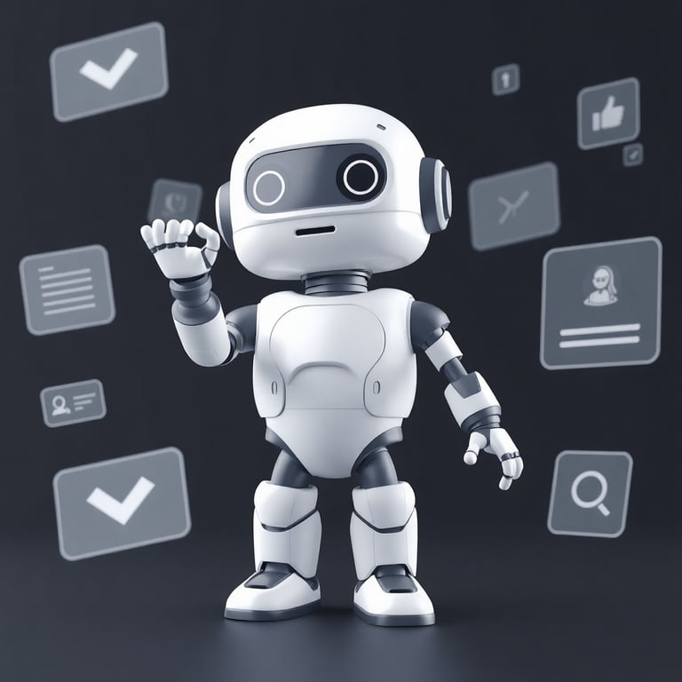 3d robot character interacting with floating ui elements, demonstrating ai website building capabilities