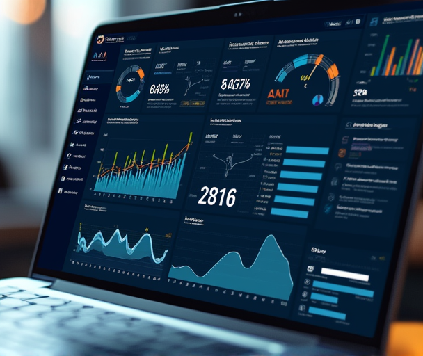 AI marketing dashboard visualization with data analytics and campaign performance metrics