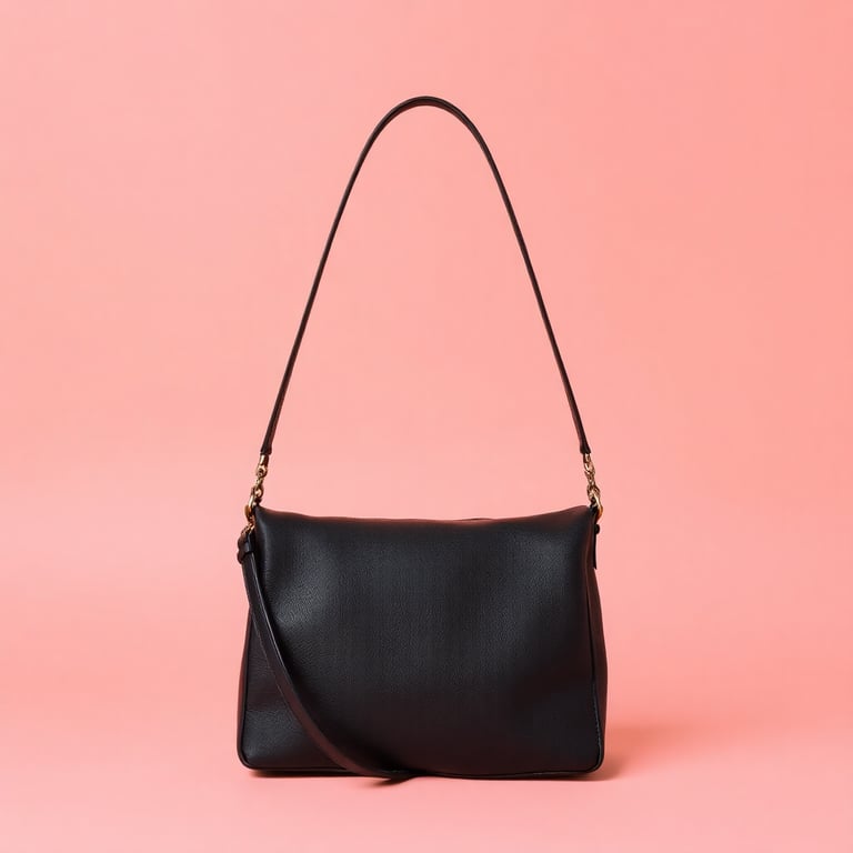 Elegant Black Leather Handbag on Peach Background
