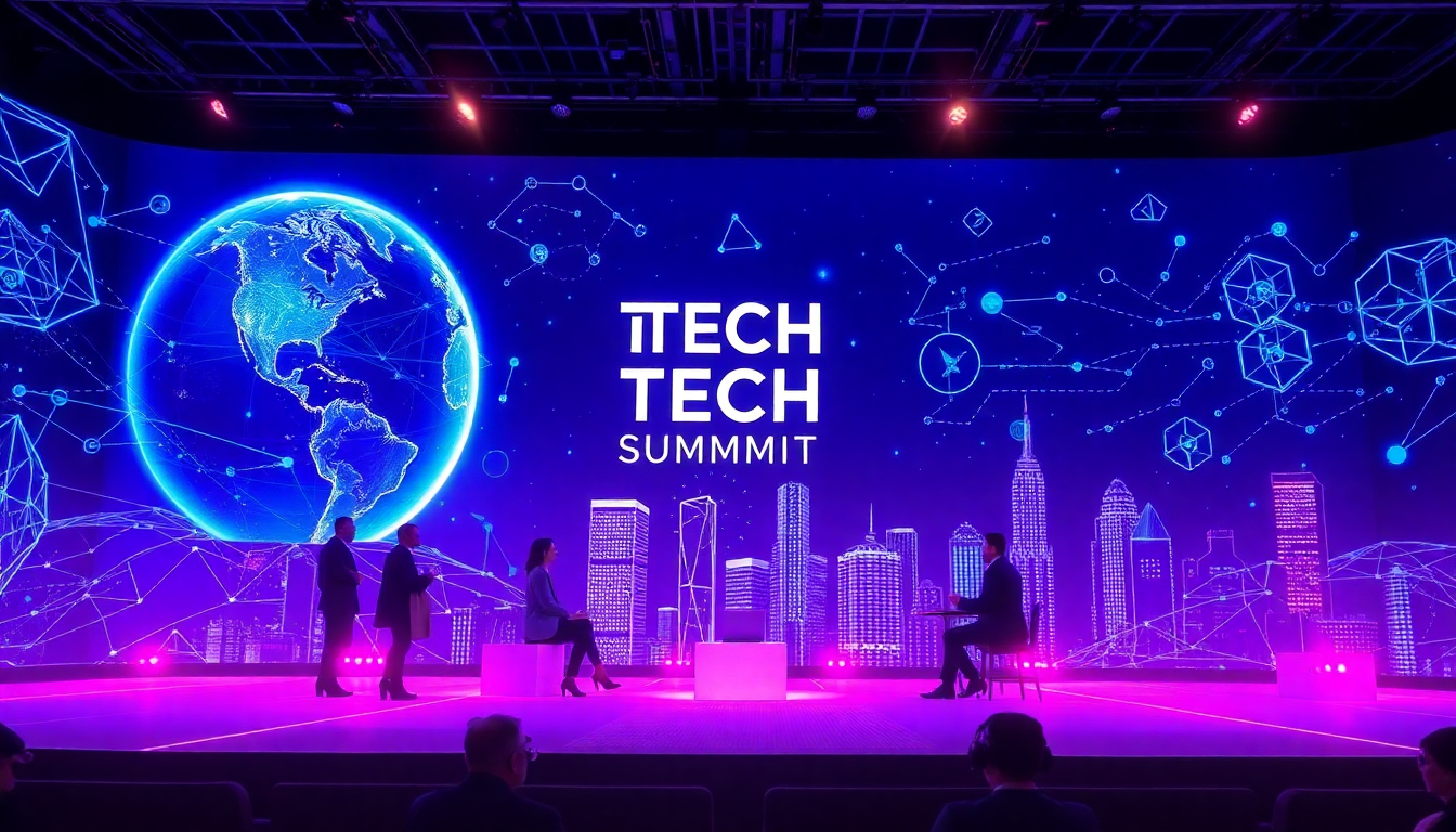 breaking news about global tech innovation summit featuring industry leaders discussing future technologies