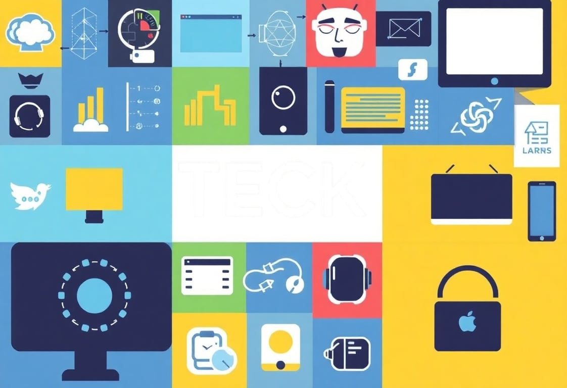 collage of tech icons and devices representing various aspects of technology