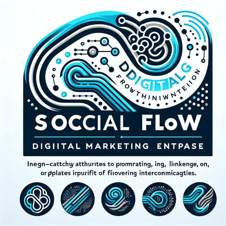 "Create a sleek and modern logo for 'Social Flow Digital,' a cutting-edge digital marketing company. The design should reflect creativity, connectivity, and motion. Incorporate flowing, dynamic elements like wave patterns, fluid lines, or interconnected dots to symbolize 'flow' and digital communication. Use a stylish, clean font, with emphasis on the word 'Flow' to give it a standout effect. The logo should feel professional yet approachable, appealing to businesses seeking innovative marketing strategies. Include the text social flow digital"