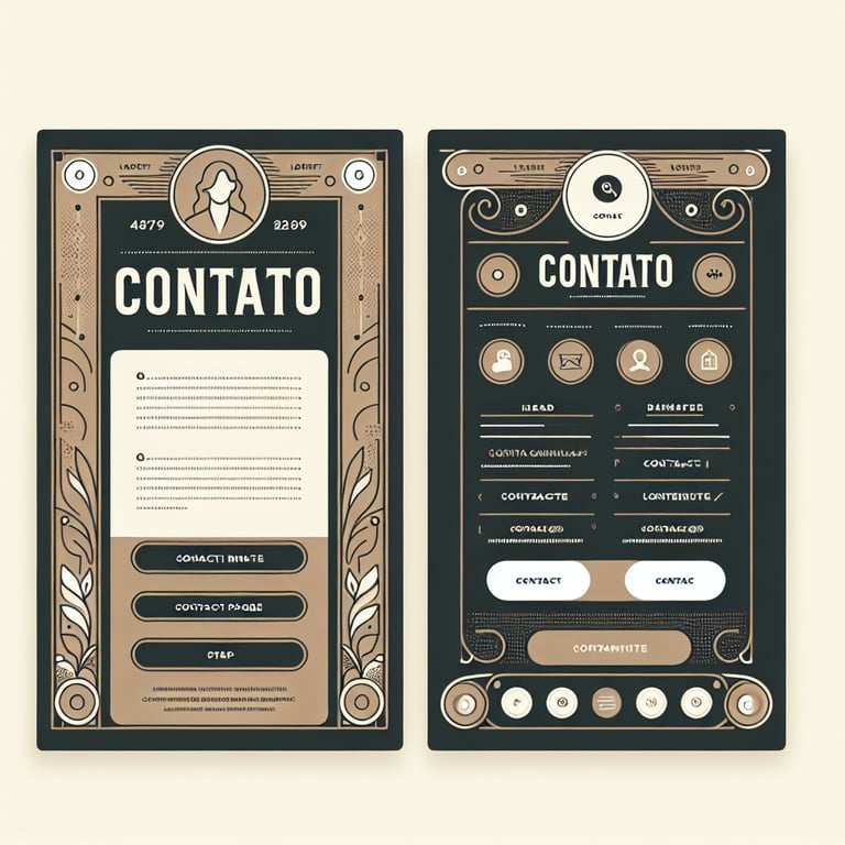Create an image that has a similar layout to the provided image, with a clean and professional design. The background should be simple and harmonious in color scheme. Include a header with the title 'Contato' and sections for contact information, ensuring the overall look is suitable for a contact page.