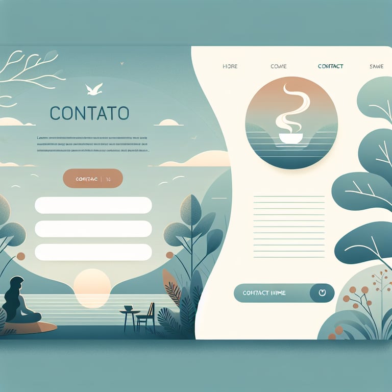 Create an image that has a similar layout to the provided image, with a clean and professional design. The background should be simple and harmonious in color scheme. Include a header with the title 'Contato' and sections for contact information, ensuring the overall look is suitable for a contact page.