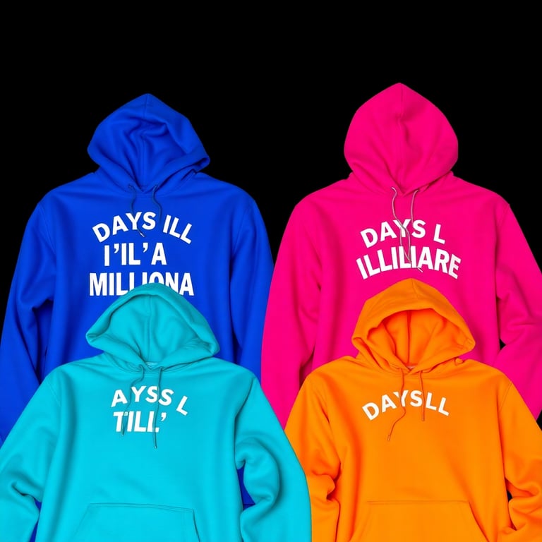 days till i'm a millionaire hoodies displayed in vibrant colors