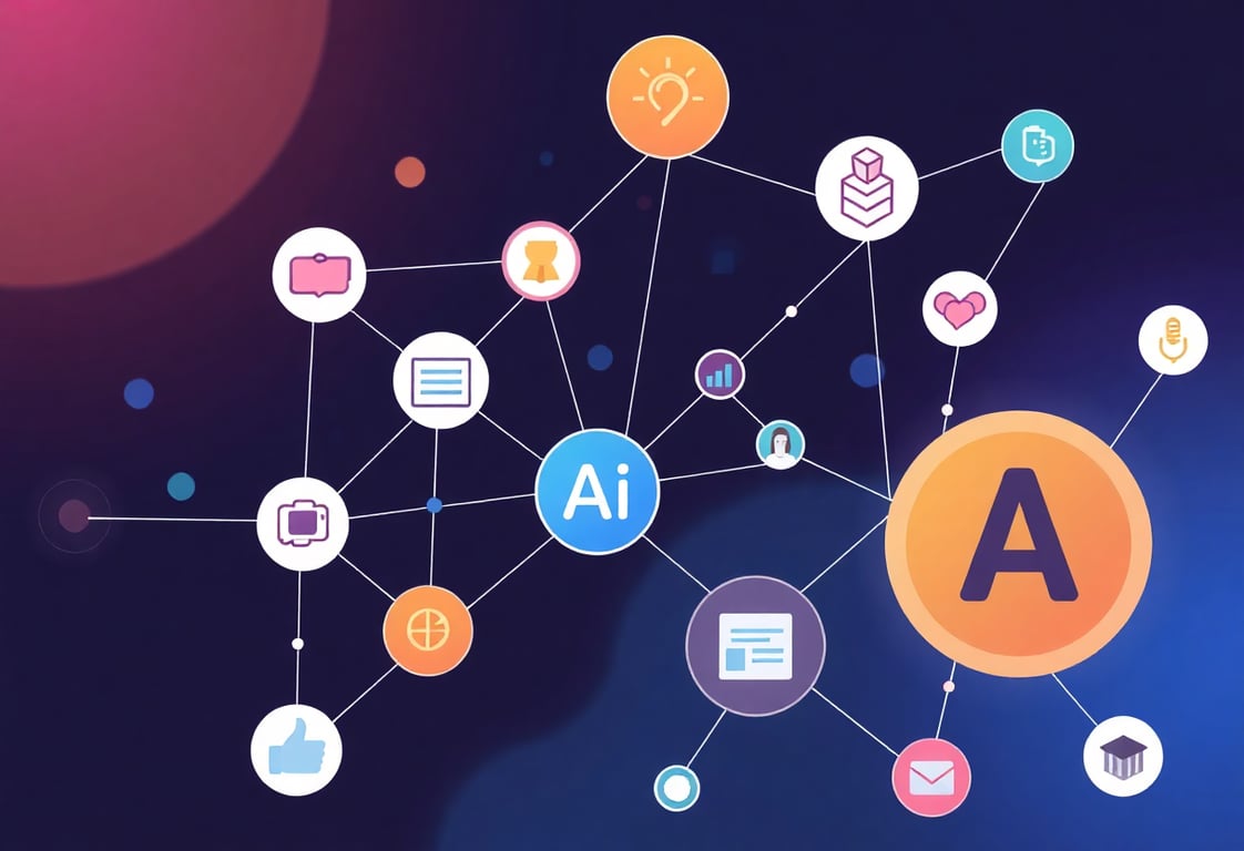 illustration showing ai tools ecosystem with connecting nodes and interactive elements
