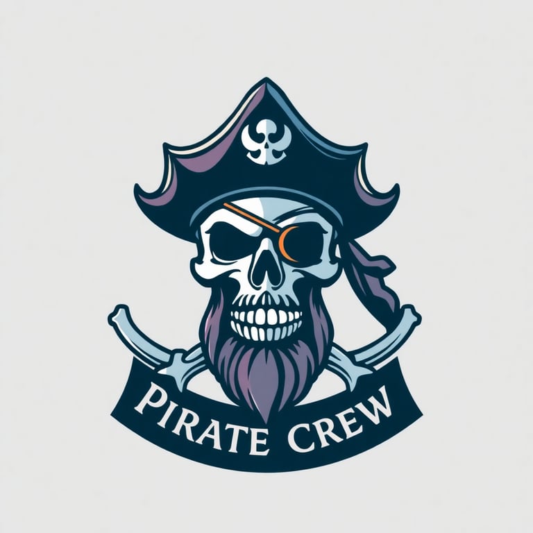logo da pirate crew, um crânio pirata com um tapa-olho e um chapéu de capitão