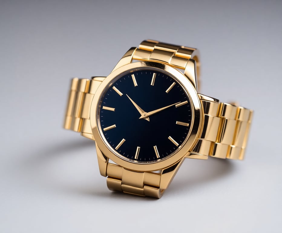 luxury gold watch with dark blue face, symbolizing elegance and sophistication