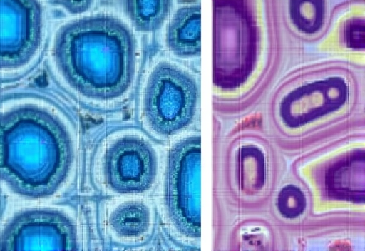 Microscopic view of cancer cells showing abnormal structure and division patterns compared to normal cells