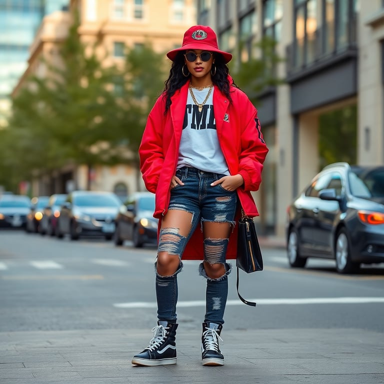 model wearing days till i'm a millionaire gear in an urban setting