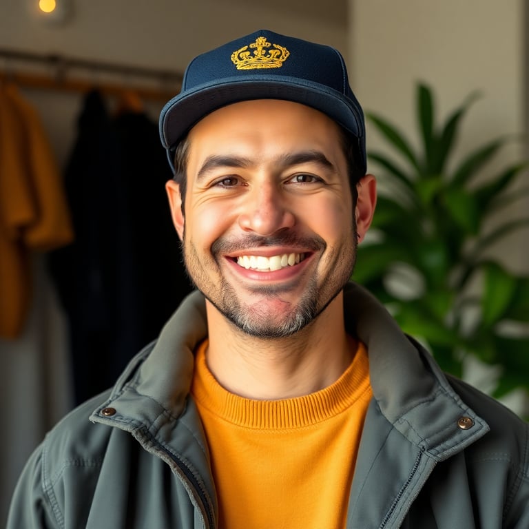 portrait of a satisfied customer smiling, showcasing their positive experience with grand royal used clothing