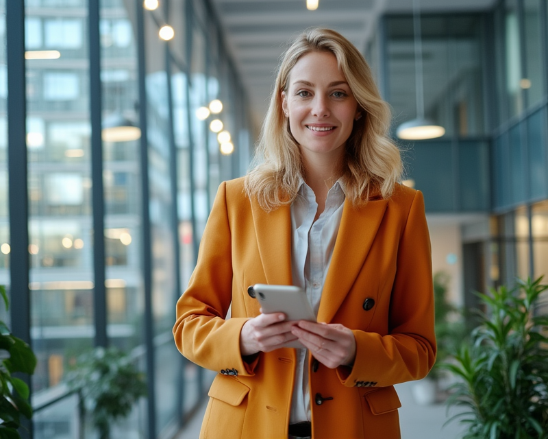 Professional working in Germany with modern office buildings in background