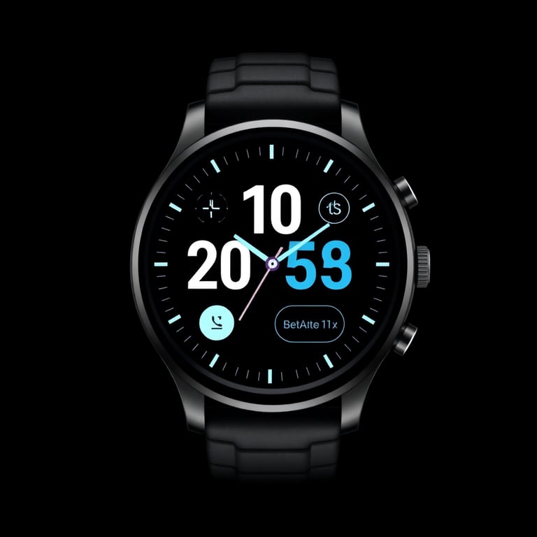 sleek black smart watch with a digital display showing time and notifications, perfect for business professionals