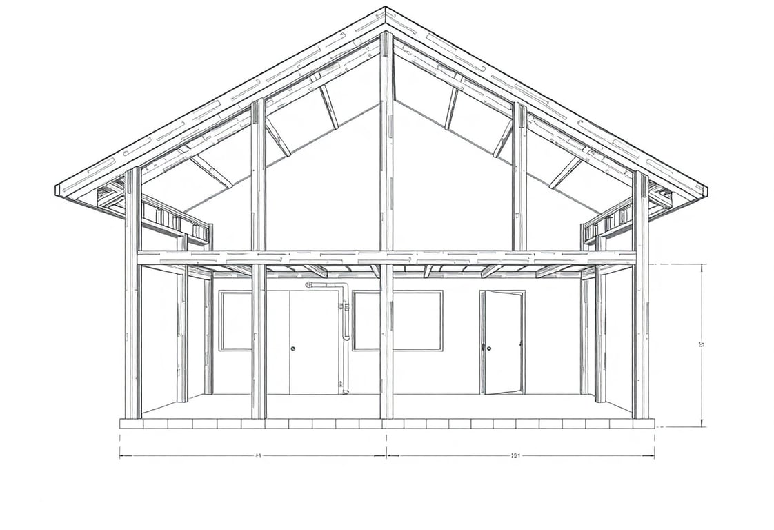 structural blueprint for a two-bedroom house with detailed load-bearing elements