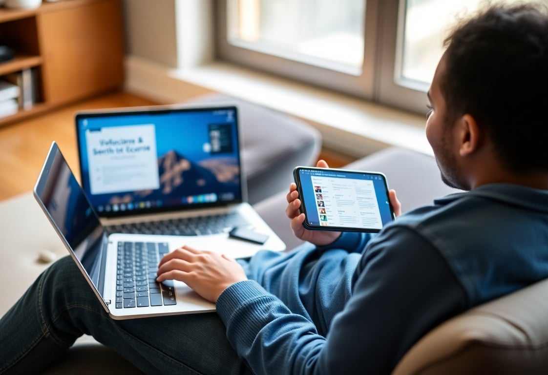 student studying on laptop and mobile devices, showcasing the flexibility of online learning