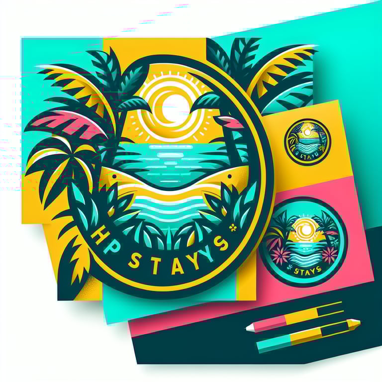 Trendy Modern and Sporty Logo for my company, Hip Stays. Should suggest short term rental in the Florida Keys. Tropical with color scheme of Turquoise, Yellow, and Hot Pink