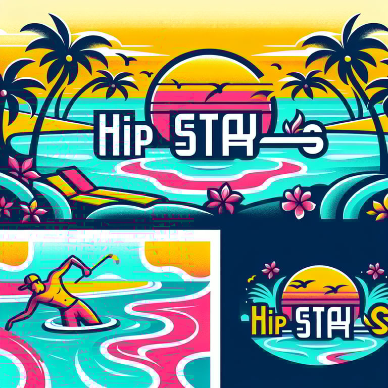 Trendy Modern and Sporty Logo for my company, Hip Stays. Should suggest short term rental in the Florida Keys. Tropical with color scheme of Turquoise, Yellow, and Hot Pink