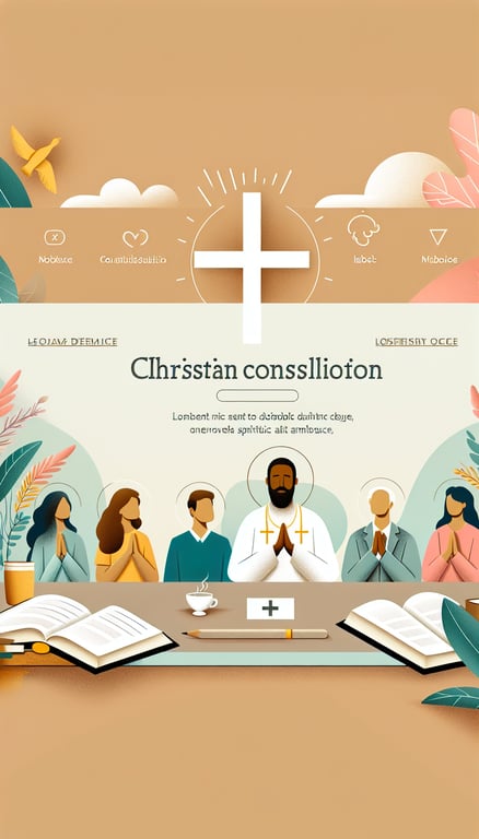 Un diseño de sitio web para una consultoría cristiana, con elementos como una Biblia, una cruz, personas en oración, y un ambiente espiritual, todo en un estilo moderno y acogedor.